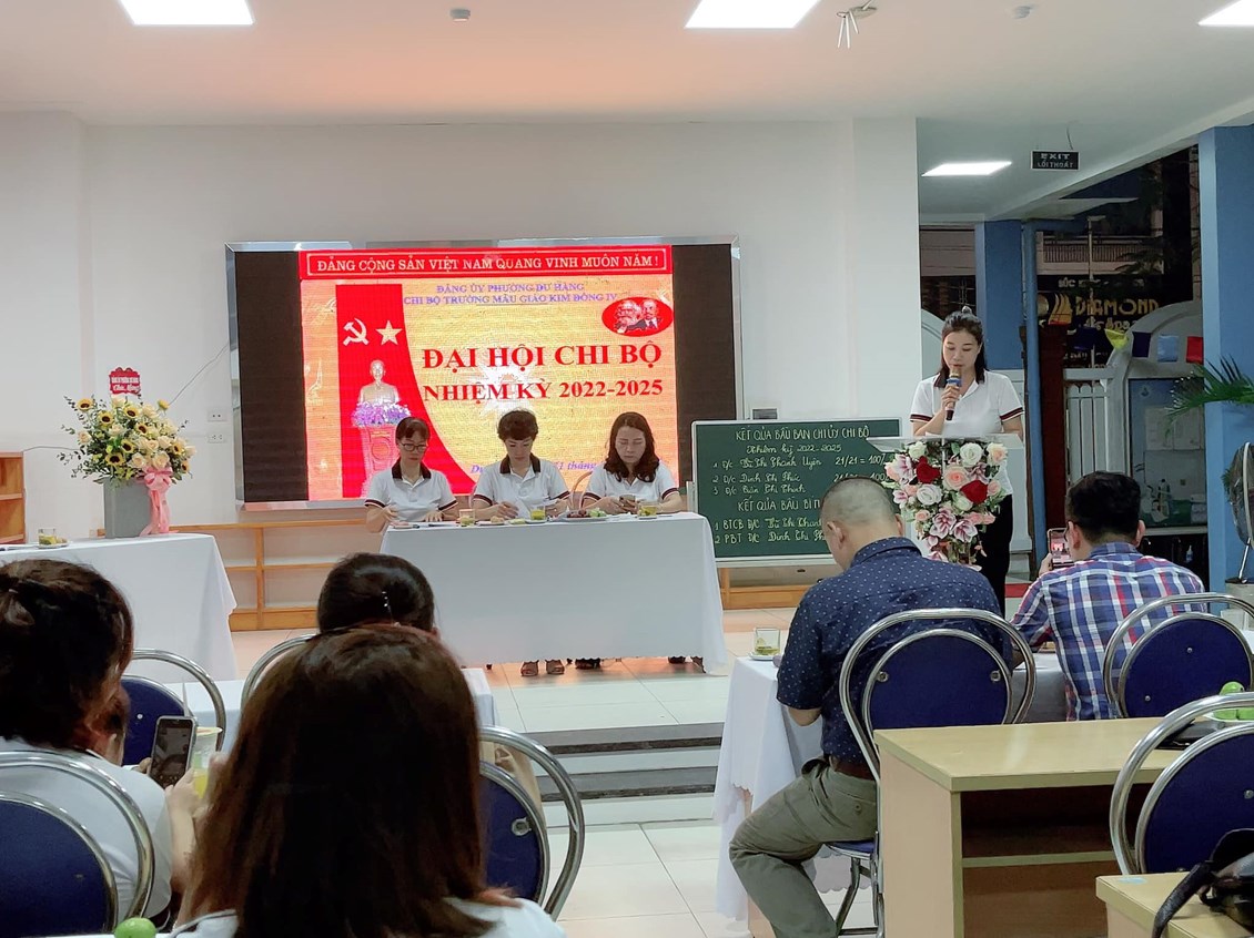 Đ/c Vũ Thị Thanh Uyên - Bí thư Chi bộ đã trình bày Báo cáo chính trị đánh giá kết quả thực hiện nhiệm vụ nhiệm kỳ 2020-2022 và phương hướng, nhiệm vụ của Chi bộ nhiệm kỳ 2022-2025. Nhiệm kỳ 2020-2022 Chi bộ trường mẫu giáo Kim Đồng IV có nhiều nỗ lực trong lãnh đạo, chỉ đạo, đạt được nhiều kết quả tốt đẹp. Trong nhiệm kỳ mới 2022-2025 Chi bộ nhà trường tiếp tục giữ vững và phát huy chất lượng trong các hoạt động chăm sóc giáo dục trẻ. Làm tốt công tác xây dựng Đảng, lãnh đạo các tổ chức chính trị của nhà trường, bồi dưỡng và phát triển đảng viên mới.