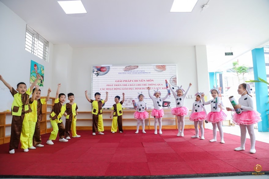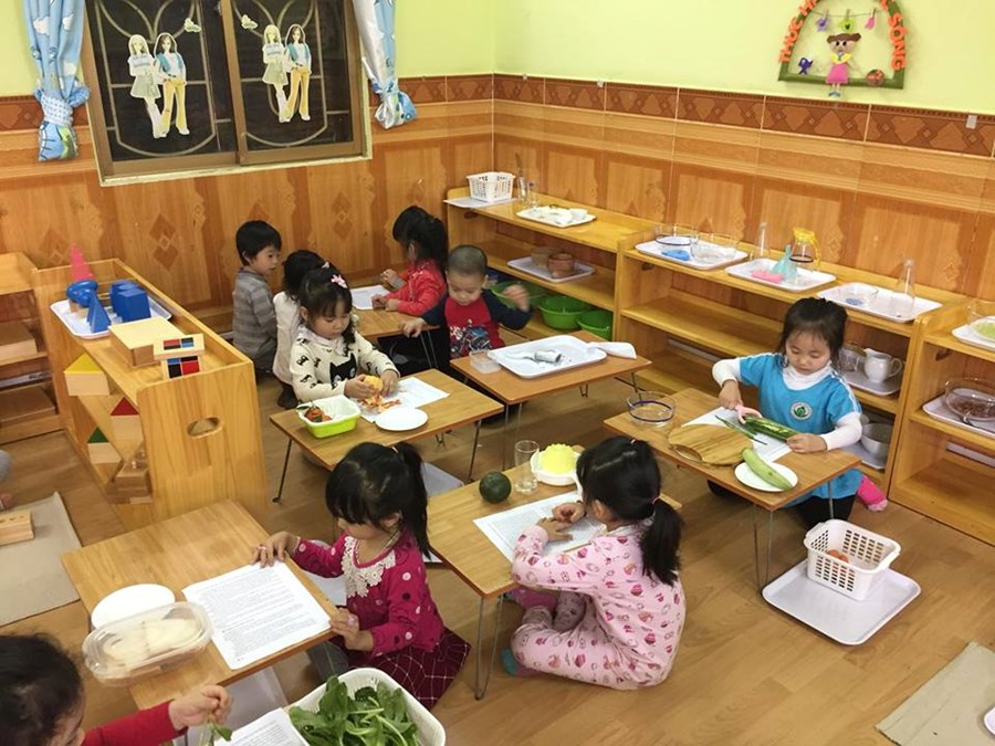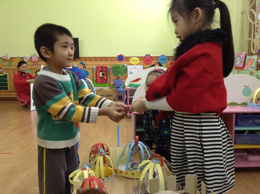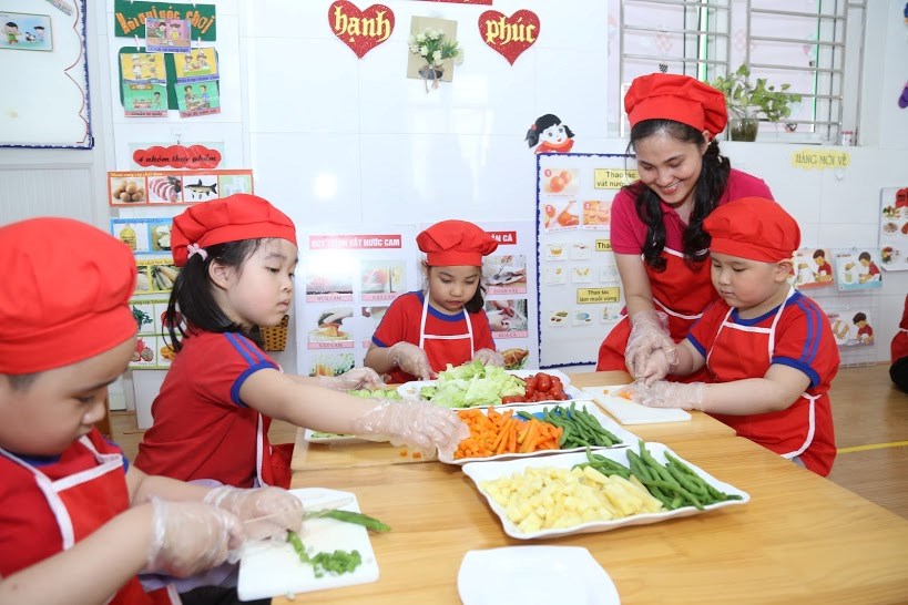 Đến trường, bé được rèn kỹ năng sống, giúp bé nhanh nhẹn, tự tin, chủ động, sáng tạo.