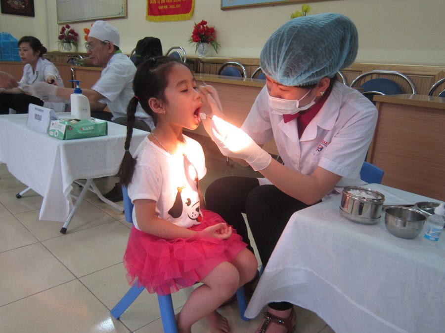Đến trường, bé có những bữa ăn giàu dinh dưỡng và chất lượng, được theo dõi sức khỏe định kỳ.