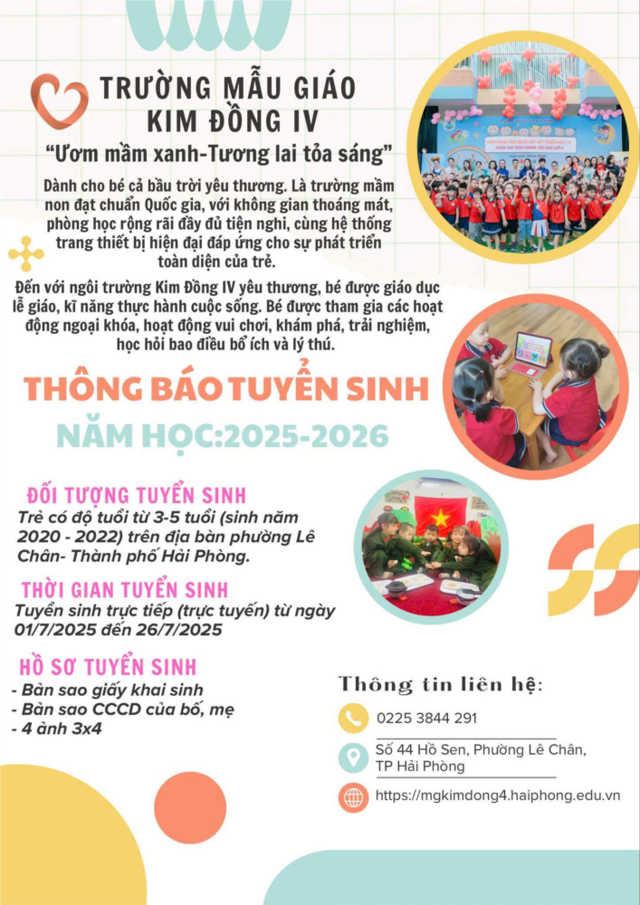 Đối tượng tuyển sinh: Trẻ có độ tuổi từ 3-5 tuổi (sinh năm 2020 - 2022) trên địa bàn phường Lê Chân- Thành phố Hải Phòng.